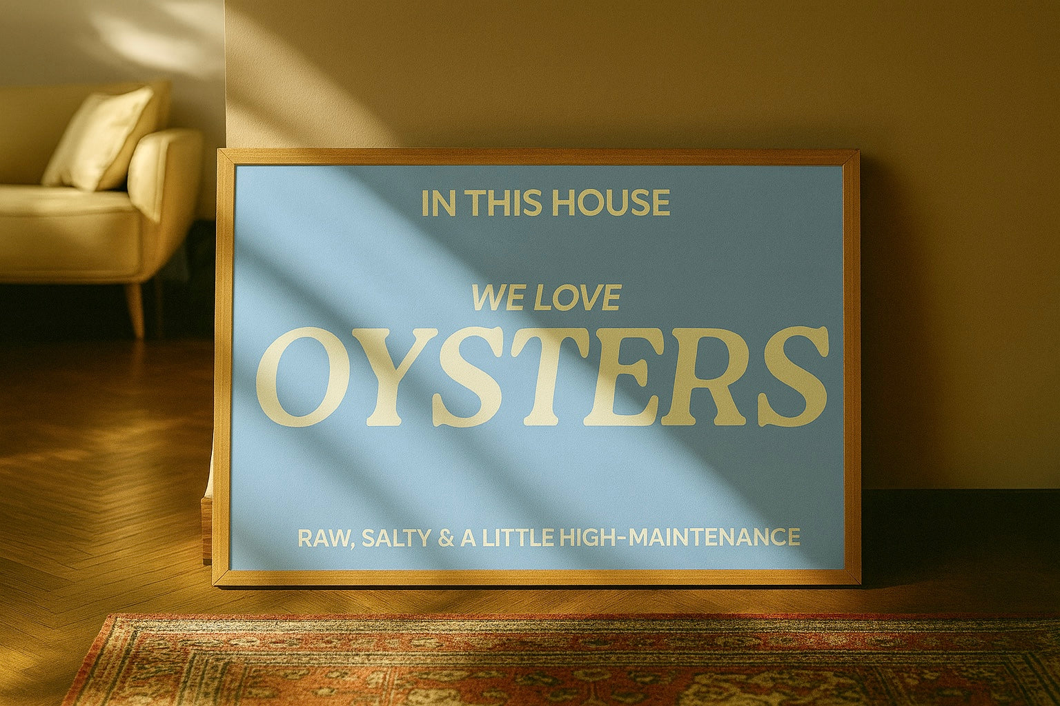In this house we love oysters typography print