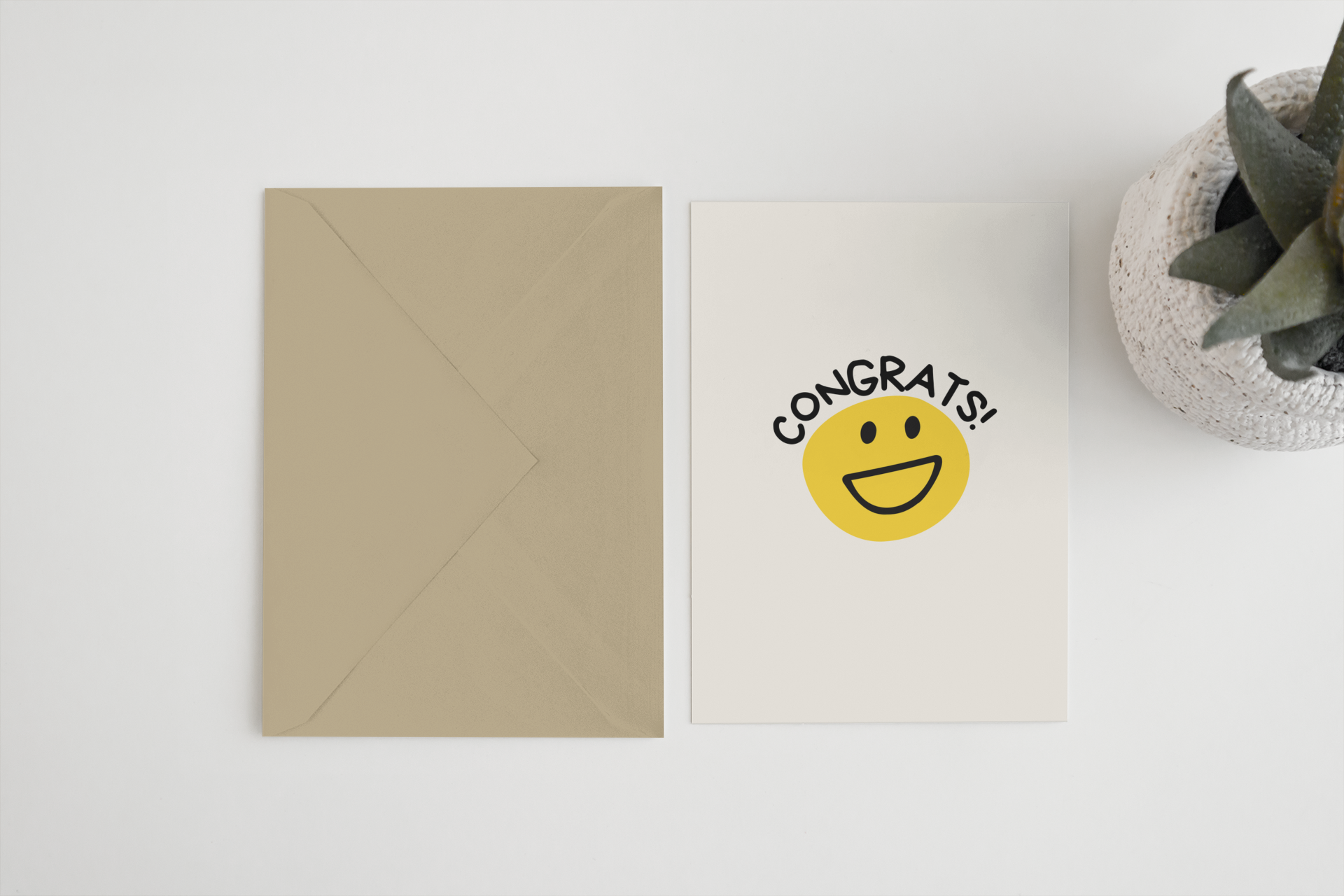 5x7 Greeting Card made from high quality FSC certified recycled ivory speck paper and recycled brown Kraft envelope.
